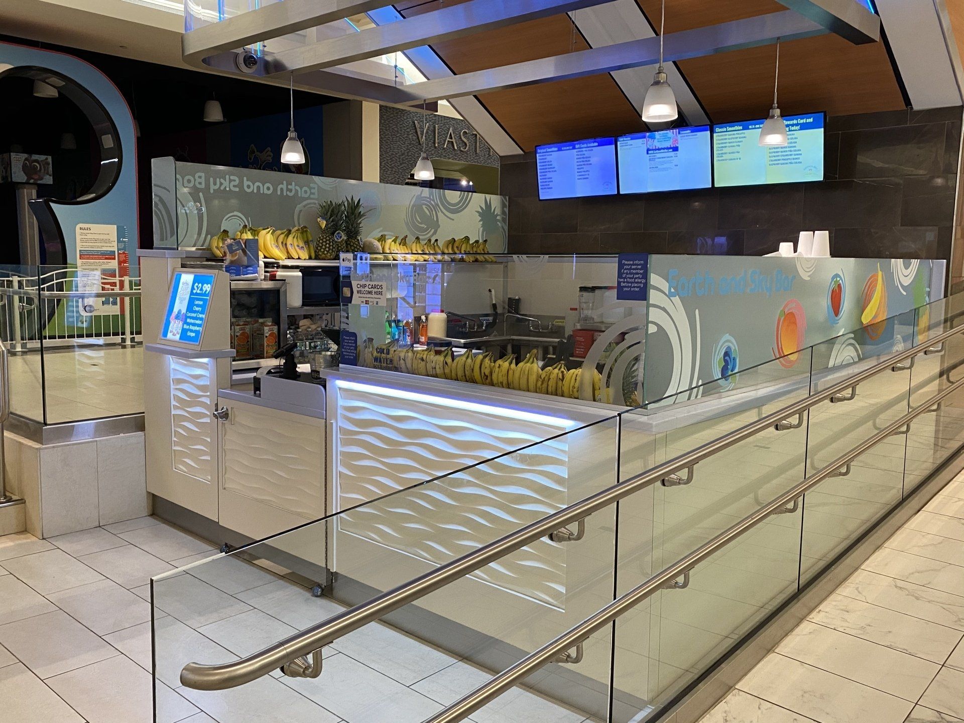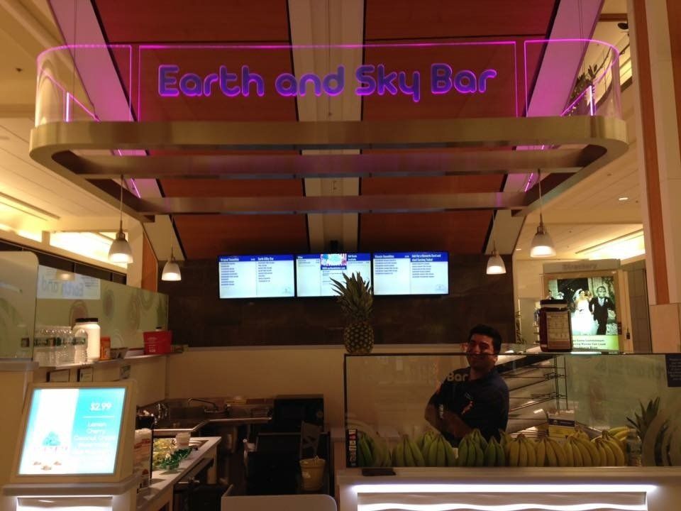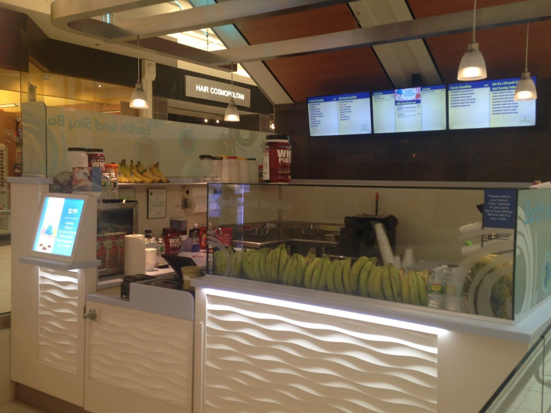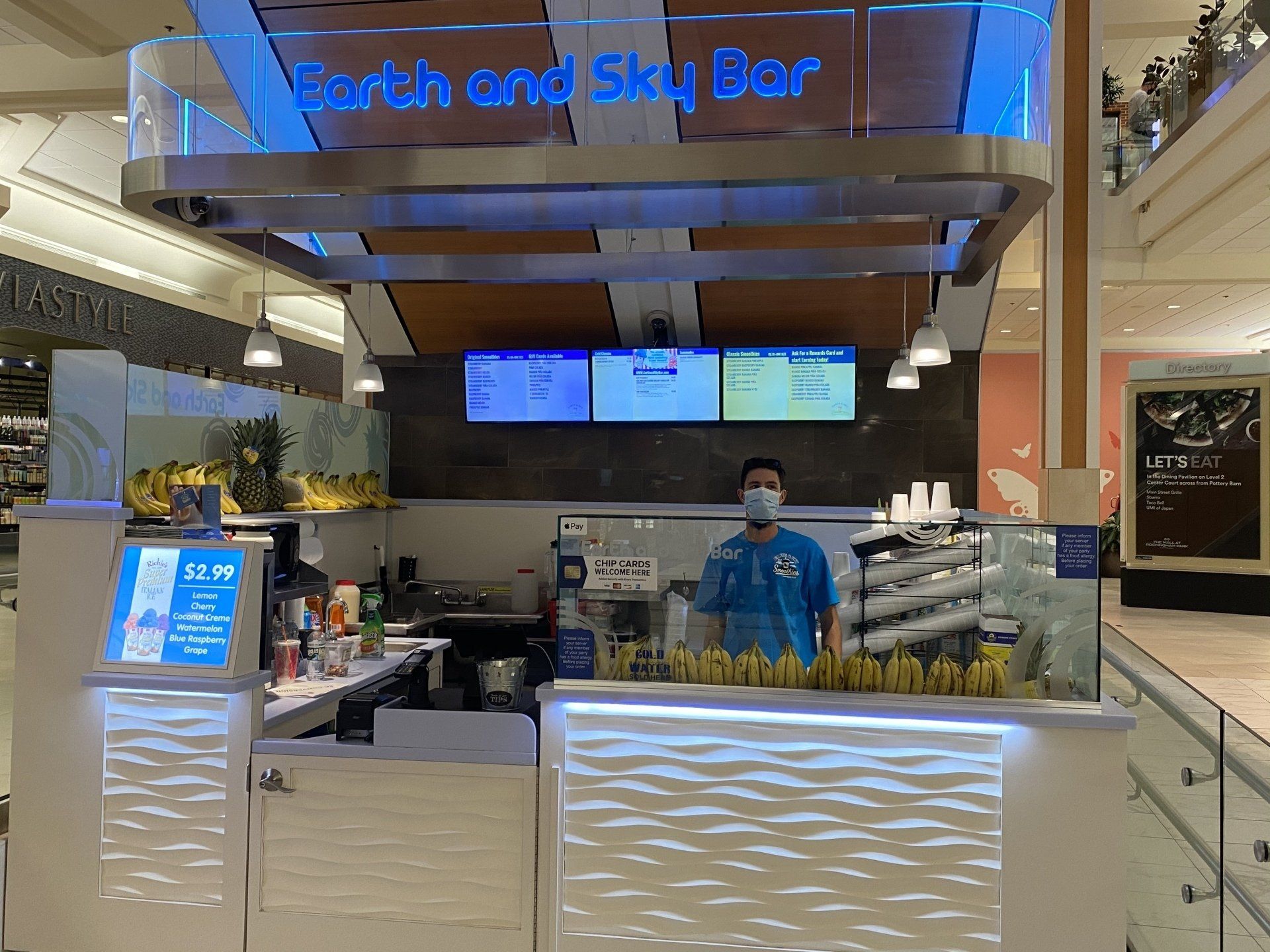 As you stroll through the Mall at Rockingham Park, keep an eye out for the Earth and Sky Bar. We're on Level 1 near Dick's Sporting Goods behind the escalator. Your fruit smoothie